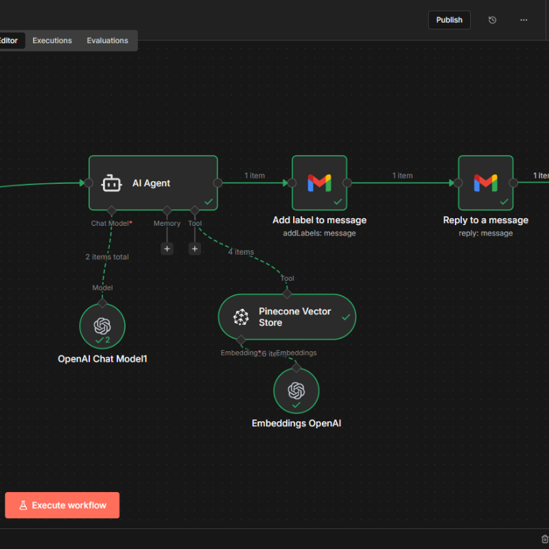 I've assisted over 100 businesses with various tasks, projects, & workflows Each project tells a story. Click to explore what I have built. AllProject ManagementVirtual AssistanceWorkflow Automationn8n AI-Powered Customer Support WorkflowThe system classifies each email, routes relevant messages to an AI support agent, and responds with context-aware answers.Automated Customer Request Handling System Using Zapier + AIRoutes inquiries to the right team, formats client details for personalization, and uses AI to generate draft responsesMake.com Email-to-Slack Smart RouterWatches incoming Gmail messages for keywords and sends real-time notifications to the appropriate Slack channelsMonday.com Implementation and AutomationScalable Monday.com implementation to manage projects and processesVirtual AssistanceProviding reliable admin support to keep your business running smoothlyProject ManagementOrganizing, planning, and overseeing projects from start to finishAirtable Implementation & AutomationCustom Airtable systems | flexible databases, automations, interfaces, extensions